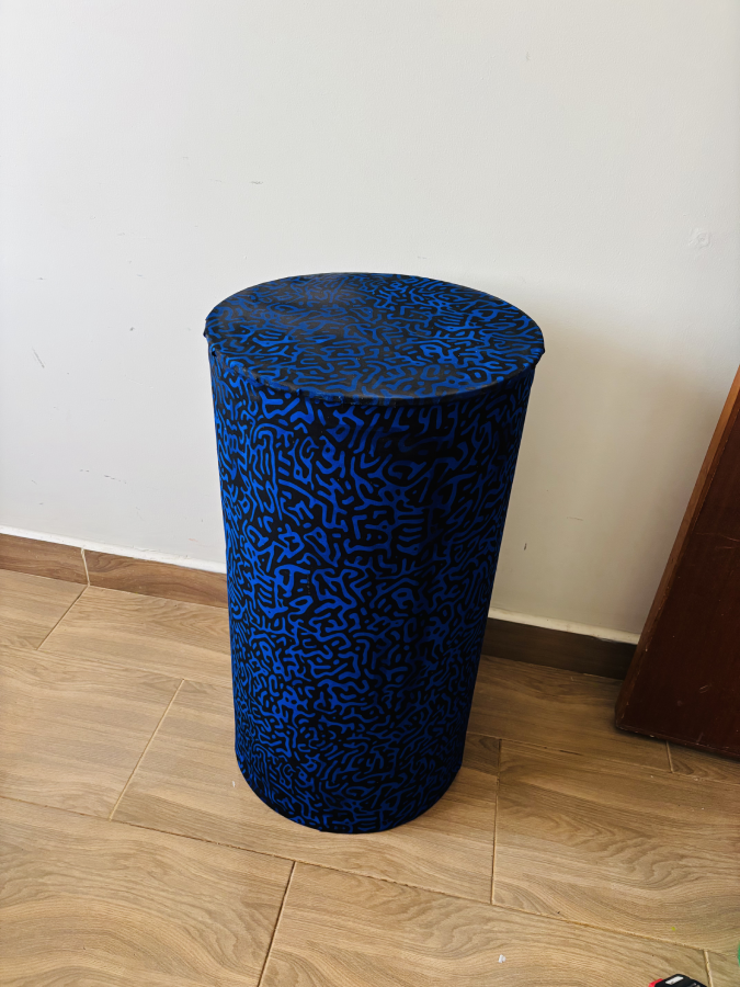 Material: A thin layer of tin, hard carton and mudcloth print fabric